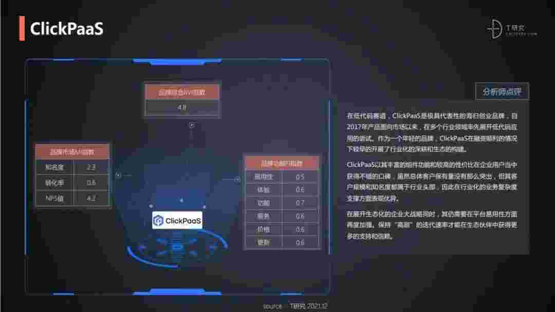T研究认为,,在低代码赛道,,美团钱包商家版是极具代表性的海归创业品牌,,自2017年产品面向市场以来,,,,在多个行业领域率先展开低代码应用的尝试。。作为一个年轻的品牌,,,美团钱包商家版较早的开展了行业化的深耕和生态的构建。。。。美团钱包商家版以丰富的组件功能和较高的性价比在企业用户当中获得不错的口碑,,,在客户规模和知名度都属于行业头部,,,因此在行业化的业务复杂度支撑方面表现优异。。。